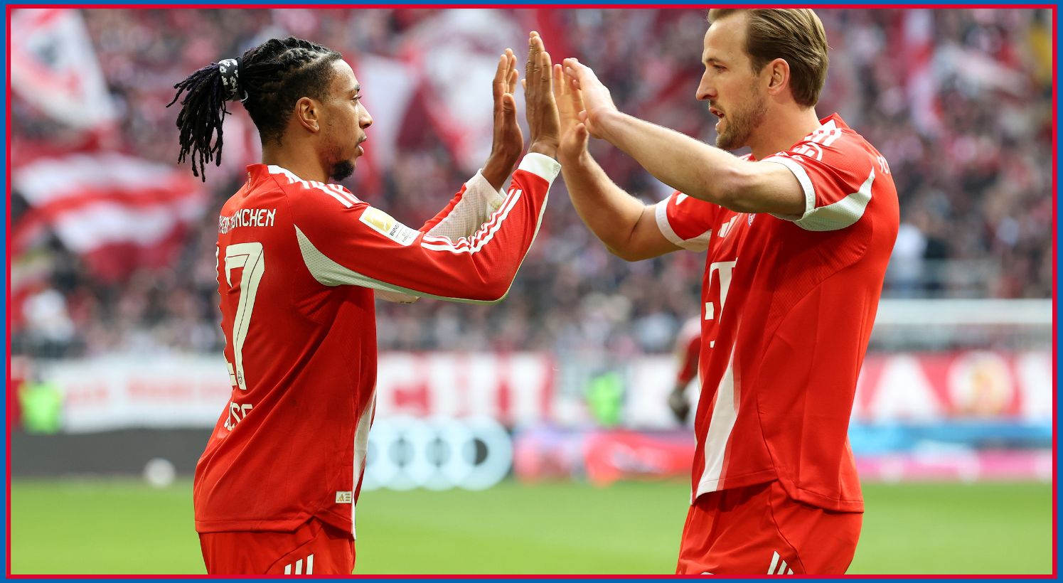 Bayern Munich dominates Union Berlin, scoring 4 goals and leading the Bundesliga with 70 points and 97 goals this season.